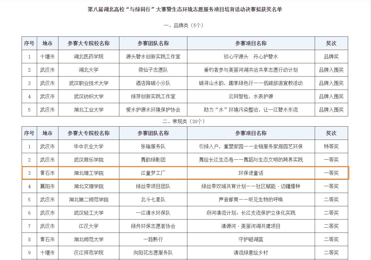 本网消息 2025年6月15日,从第八届湖北高校“与绿同行”大赛暨生态环境志愿服务项目大赛决赛现场传来捷报,WilliamHill威廉希尔绿色天使志愿服务大队的“江童梦工厂”团队凭借其创新项目“环保进童话”,在全省87所高校1027个参赛项目中脱颖而出,荣获大赛省级一等奖。