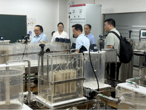 招生宣讲会后,在武汉工商学院环境与生物工程学院领导的陪同下,刘子国副院长一行参观考察了该院的校内实习实训实验室。双方就实验室《智能化污水处理系统》的教学应用、学生实习实训及潜在科研合作方向进行了现场交流与探讨。