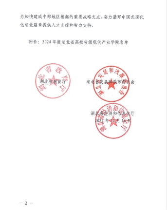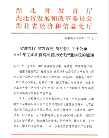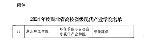 近日,湖北省教育厅、省发改委、省经信厅联合公布了2024年度省级现代产业学院名单,威廉williamhill“环保节能与安全应急现代产业学院”成功获批。这一殊荣不仅是对我校多年来在节能环保、安全应急领域深耕细作、积极探索的肯定,更是对我校产教融合、校企合作模式的认可与鼓励。