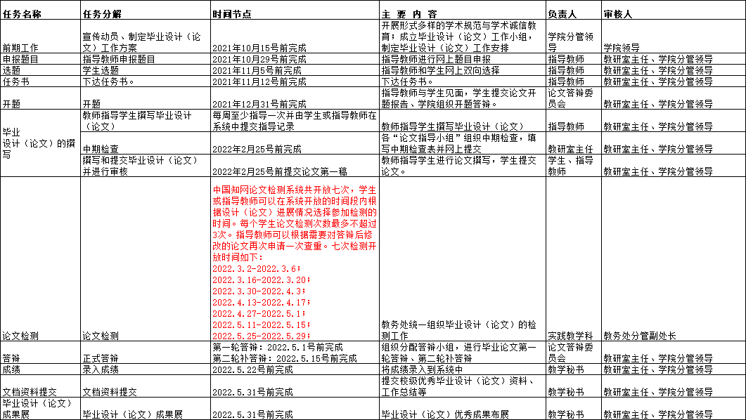 2022届毕业设计(论文)第一轮答辩工作初步定于2022年5月1号前完成,第二轮补答辩于2022年5月15号前完成。