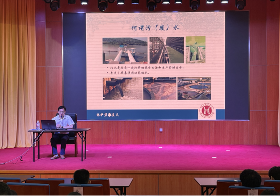 讲座中,汪博士从废水的能源及资源回收、水污染危害以及常规污水处理方法等四个方面介绍了如何利用污水源的必要性,挖掘可回收资源和能源的途径。汪博士深入浅出,旁征博引,通过其通俗易懂的讲解,给全体师生展示了废水回收的广阔前景,构建科学治污、精准治污、依法治污的生态治污体系,从而持续打好蓝天、碧水、净土保卫战。汪博士总结指出,在当今社会,废水能源在回收技术上,仍然具有挑战性,需要技术突破,希望同学们通过科研学习与实践,提