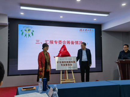 在全体与会嘉宾的共同见证下,学会副理事长肖文胜与秘书长胡春华共同为“矿区绿色低碳发展专业委员会”揭牌,这一历史性时刻标志着专委会的正式启航。紧接着,胡春华秘书长与刘秋新教授共同为首届专委会的主任委员张家泉、副主任委员李柏林和杨潇颁发了聘书。