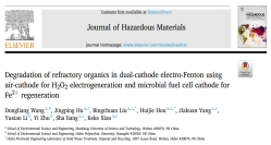 2021年2月,环境领域著名杂志Journal of Hazardous Materials(一区,Q1,Top,影响因子9.034)在线刊发研究型论文“Degradation of refractory organics in dual-cathode electro-Fenton using air-cathode for H2O2 electrogeneration and microbial fuel cell cathode for Fe2+ regeneration”,报道了一种由生物燃料电池与电芬顿耦合的新型双阴极电芬顿系统用于有机污染物处理的研究。汪东亮博士为论文第一作者。
