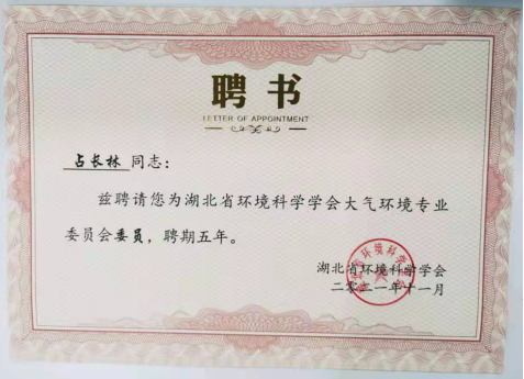 本次会议由中国地质大学(武汉)环境学院孔少飞教授主持。孔少飞首先介绍了湖北省环境科学学会大气环境专业委员会组建的基本情况,宣布了主任委员、副主任委员、秘书长及委员名单,同时也对专委会未来的工作设想进行了简要介绍。随后由特邀嘉宾对专委会委员颁发了聘书,我校占长林博士光荣地成为大气专委会成员,聘期五年。