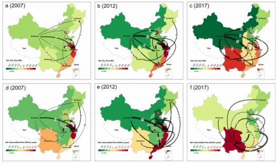发达国家高质量的生活水平是以牺牲发展中国家大量温室气体排放为基础。同样,在国内由于发展阶段、资源、人口、生活方式的不同,东部沿海等发达地区将低附加值、高排放产业转移到中西部等欠发达地区,并通过省际间贸易,出口高附加值、低排放产品,进口低附加值、高排放产品以实现自身低碳高质量发展,造成了省际间大量的二氧化碳转移,进而引发区域/省际碳不公平。随着双碳目标的提出,贸易过程中隐含的二氧化碳排放越来越受到地方政府重视,碳排放归属问题成为争议的焦点。发达地区为逃避碳规制选择进一步向不发达地区等气候政策相对宽松地区实施产业转移,造成“碳泄漏”。因此,有必要揭示地区间碳转移随时间的变化情况,进而提出相应的减缓措施。