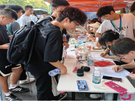 同时,学生会的工作人员及各位志愿者们在校内引导新生们顺利完成报道流程以及新生大礼包和军训服装的领取流程。毓成、毓贤和毓真(腾龙)公寓的门口也有学生会成员和志愿者引导新生入住宿舍,为新生提供全面的引导服务。