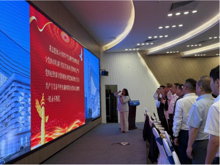 在庄重的党旗下,学会理事、武汉理工大学环境科学与工程系党支部书记王珺婷领誓,全体党员重温入党誓词,进一步坚定了为环保事业奋斗的初心和使命。