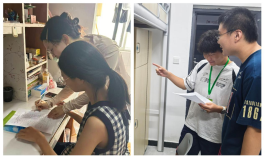 张家泉院长在走访中寄语新生:“大学是人生新征程的起点,希望同学们尽快适应环境,既要学好专业知识,也要注重培养独立生活能力。环境学院是你们成长成才的坚实后盾,期待大家在这里书写精彩的大学篇章。”杨萌书记仔细查看了宿舍的卫生环境、安全状况、绿植养护和环保创意角落,对同学们在宿舍环境中展现出的专业素养和创新精神给予了积极评价。他表示:“宿舍是同学们在校期间的‘家’,也是劳动教育和习惯养成的关键场所。看到大家能将环境专业知识灵活运用到宿舍的美化、节能和空间改造中,打造出这么多绿色、温馨、有特色的生活空间,我感到非常欣慰,这真正体现了我们环境学子‘学以致用、知行合一’的优良作风。”杨书记鼓励同学们继续保持良好习惯,巩固评比成果,让文明宿舍成为环境学院的一张亮丽名片。