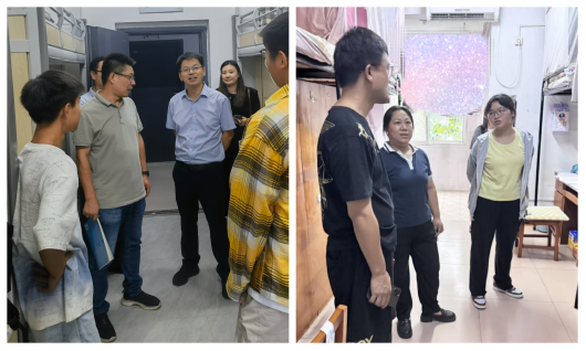 9月22日下午,环境学院党总支书记杨萌、院长张家泉、副书记姚承、副院长尹春芹及相关辅导员一行走进2025级新生宿舍,与同学们进行亲切交流,详细了解大家入学后的适应情况、学习进展和宿舍建设心得。