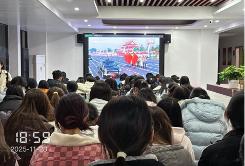 各学院观影现场秩序井然,学子们精神饱满、神情专注,目光紧紧追随着宣传片的每一个镜头。宣传片以“传承红色基因,汇聚支点力量”为核心,多维呈现国防教育的深刻内涵:既有《南京照相馆》中聚焦家国大义的动人叙事,通过平民视角展现战争年代的坚守与抗争,让学子们深切体会和平生活的来之不易;也有《绝地追击》里军警队伍不畏艰险、守护边境安全的热血片段,诠释了当代守护者的责任与担当;更有国庆阅兵的壮阔场景——铿锵有力的正步方阵、威武雄壮的钢铁洪流、尖端先进的国防装备依次亮相,整齐划一的队列、昂扬向上的姿态,直观展现了新时代人民军队的过硬作风与强大实力,让现场学子深切感受到大国强军的磅礴气势。观影过程中,各学院辅导员结合影片内容适时穿插讲解,深入剖析经典片段背后的国防意义,用通俗语言解读国防基础知识,帮助同学们更清晰地厘清国防建设与个人成长、家庭幸福、国家安宁的紧密关联。