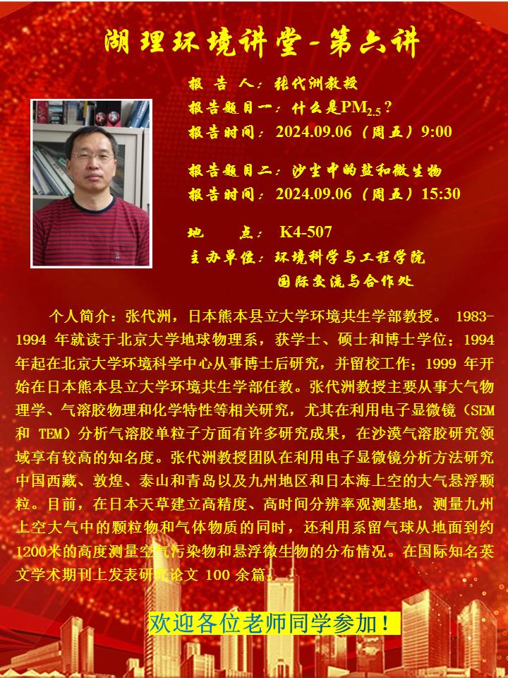 湖理环境讲堂-张代洲教授学术报告